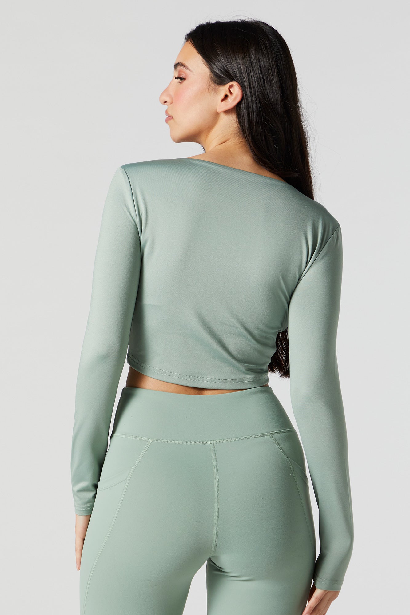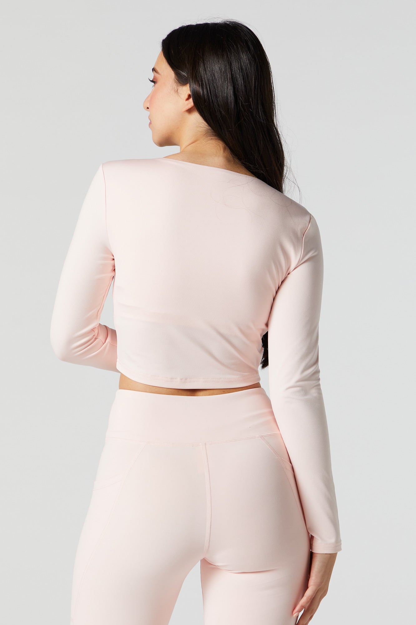 Get in the zone with our long sleeve active top, providing you with comfort and support when you need it most. This top features soft material, padded bra, scoop neckline, long sleeves, and cropped hem. Complete the look with the Active Side Pocket Legging.