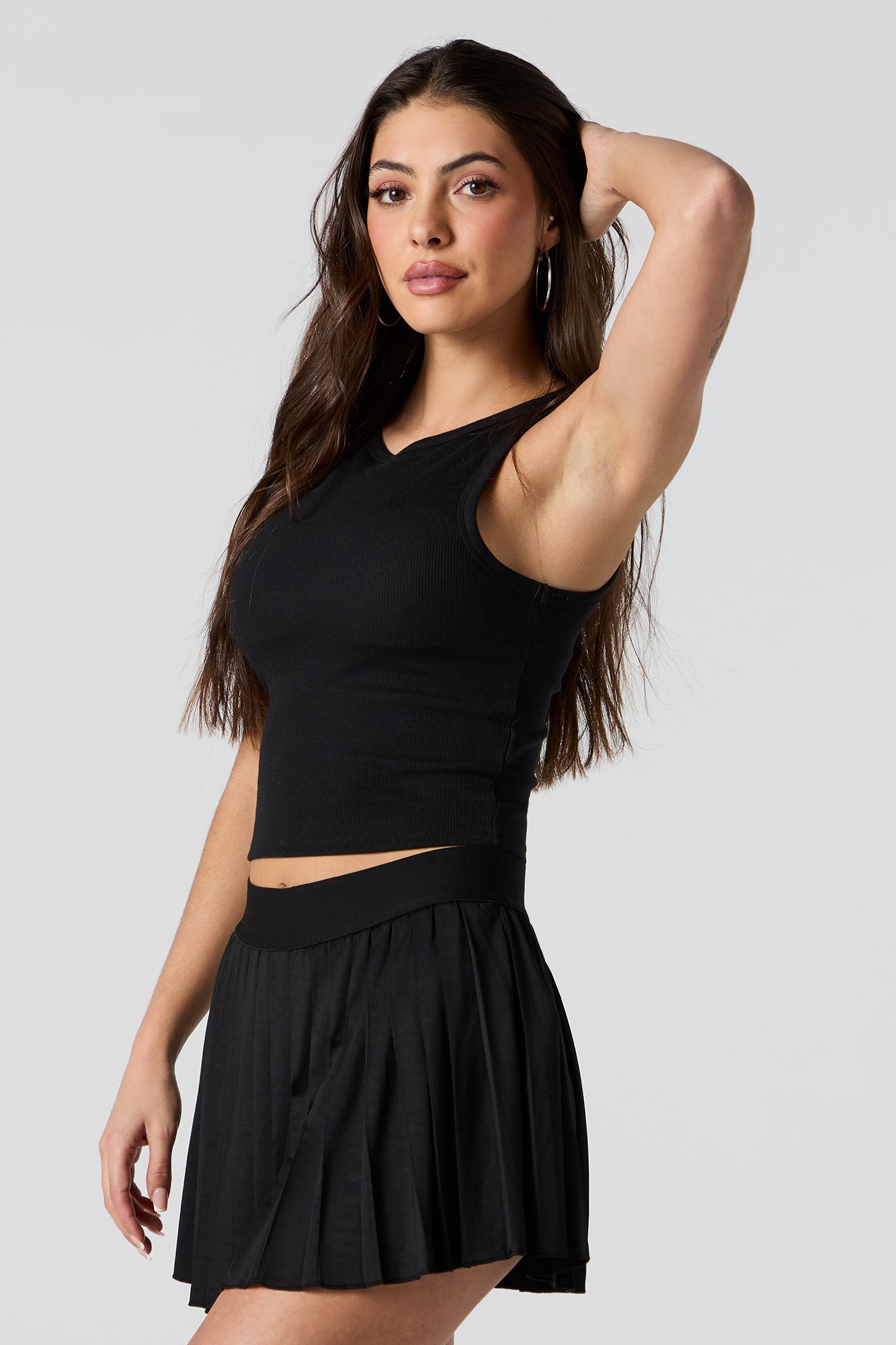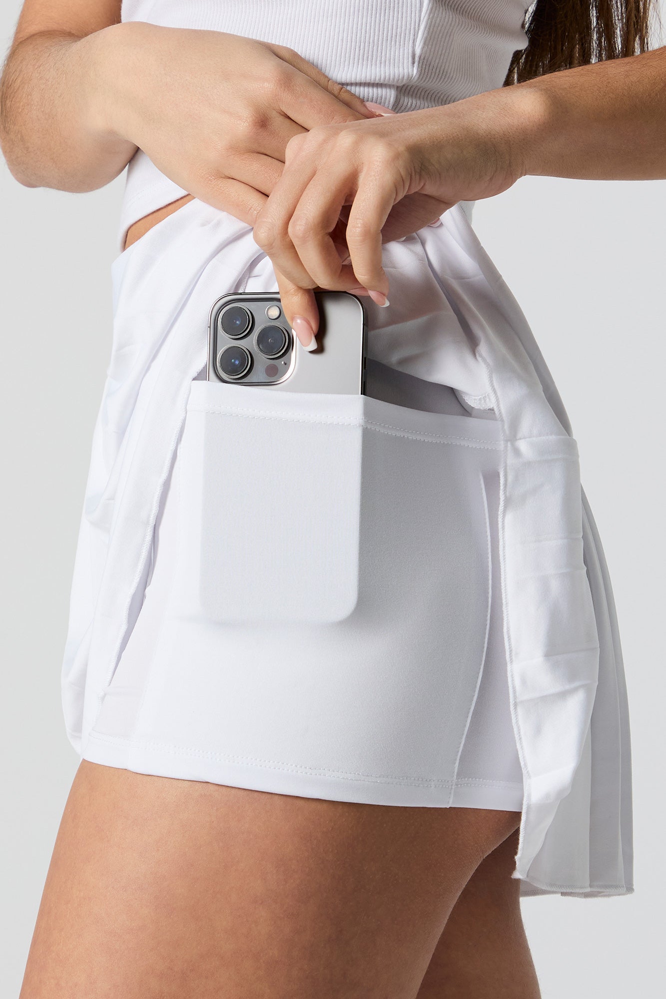 Let's go down to the tennis court! This skort features elastic waist, pleating, built-in short with phone pocket, and mini length. Pair with our Active Ribbed Tank with Built In Bra Cups to complete the look!