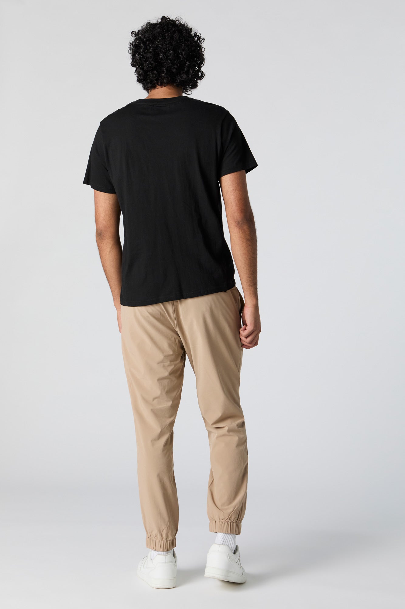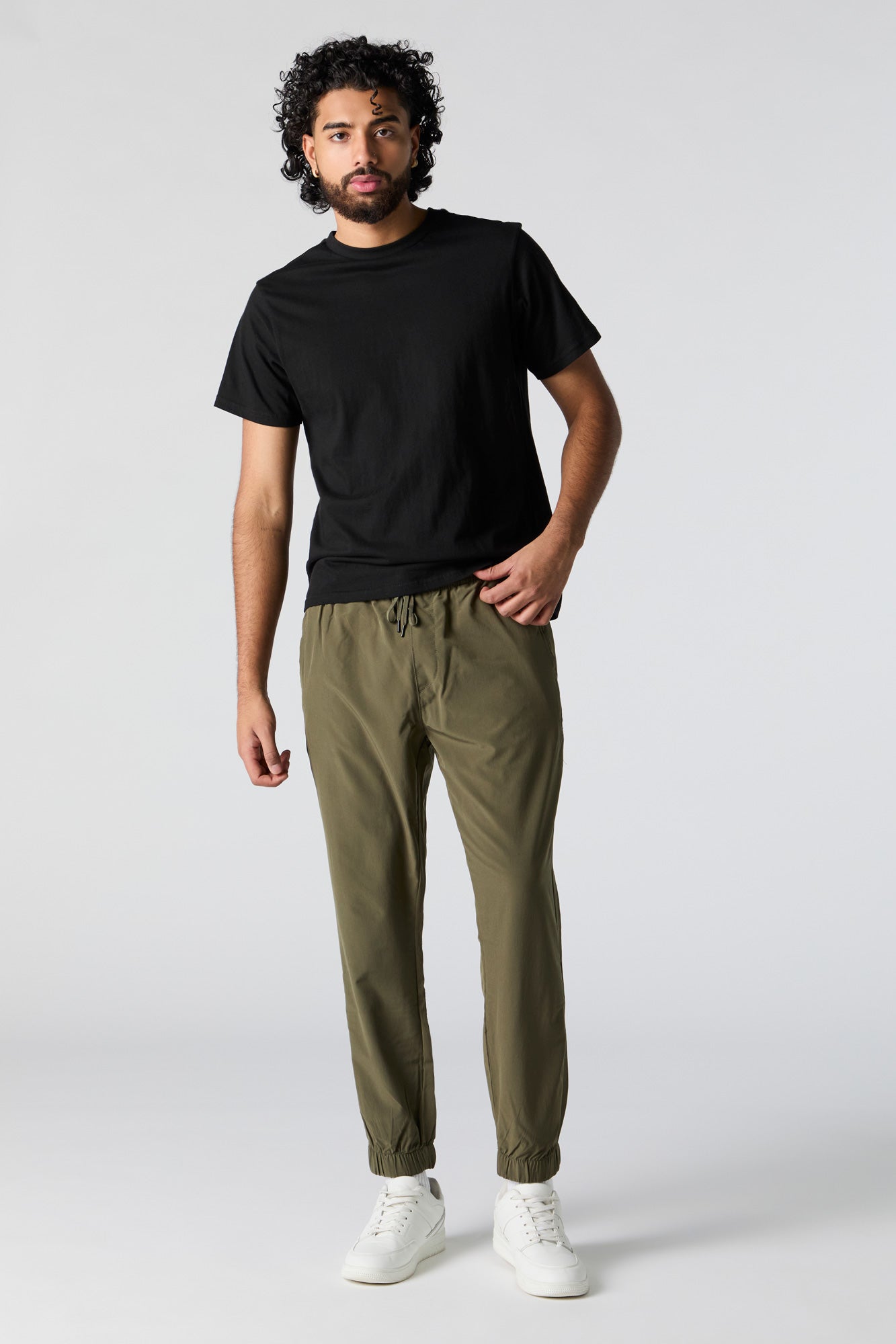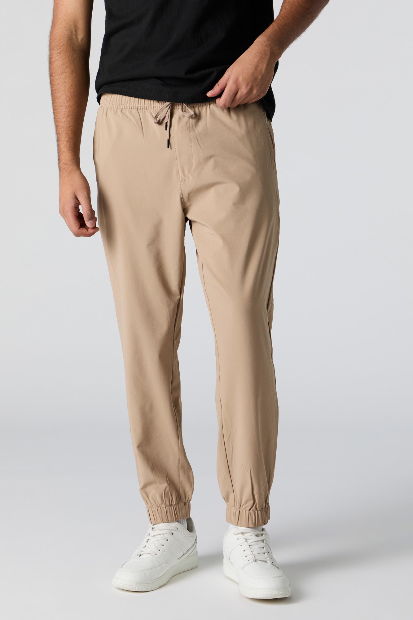 Stay active and stylish all season long in our 4-way-stretch activewear. This jogger features 4-way-stretch material, drawstring waist, slide-in pockets, and cinched ankles.
